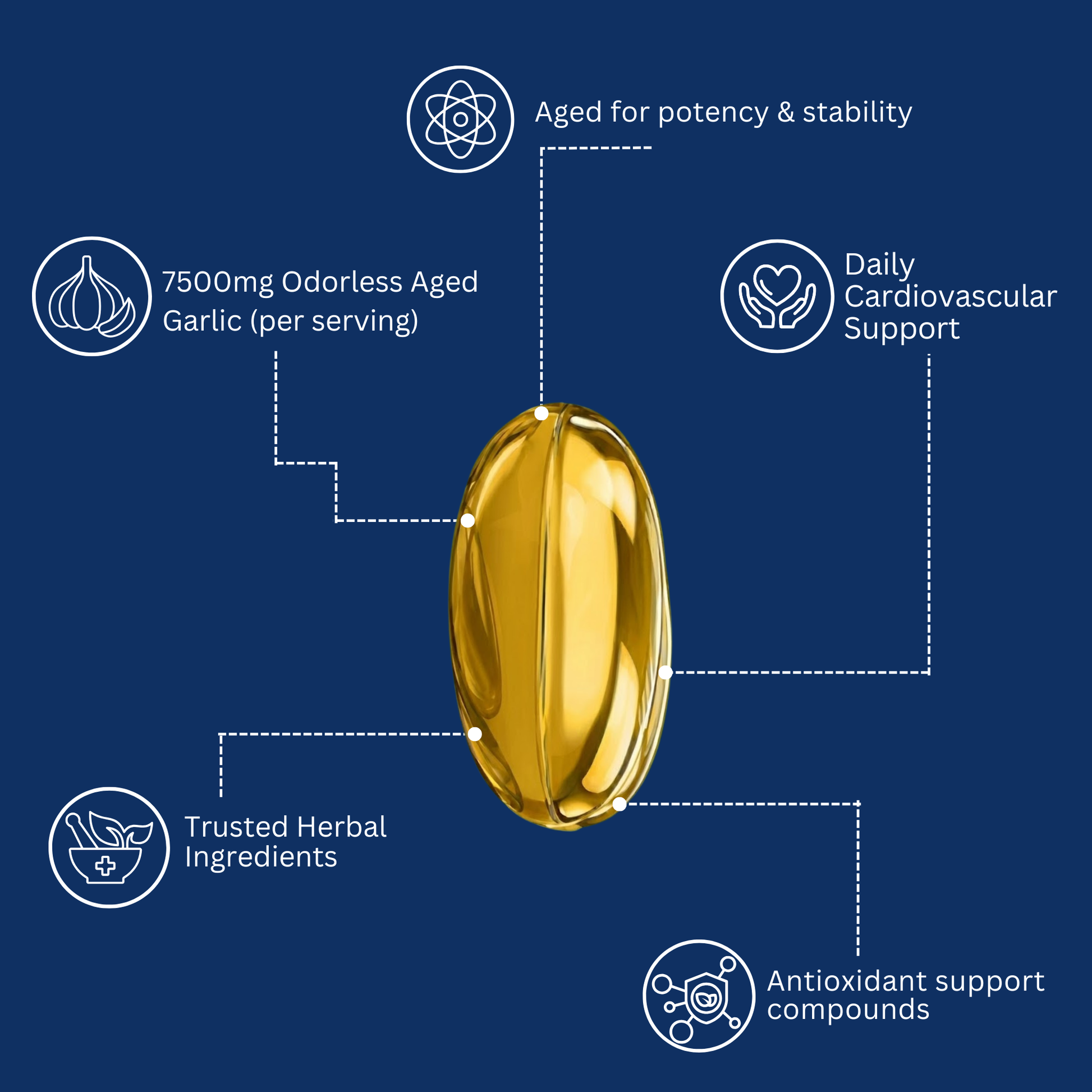 This high-potency formula delivers the equivalent of 7500mg of fresh garlic in a single, easy-to-swallow softgel. It’s the smartest way to protect your cardiovascular system and overall vitality without the social awkwardness of garlic odor.