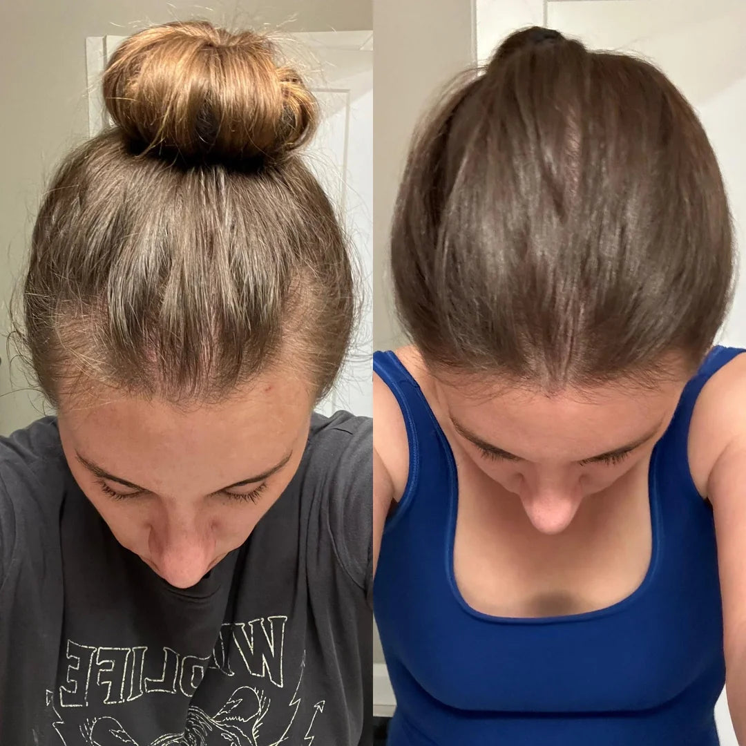 Tiny baby hairs may begin to appear along your hairline or part. This is an encouraging sign that your follicles are reactivating, thanks to the nutrient support and reduced DHT buildup.